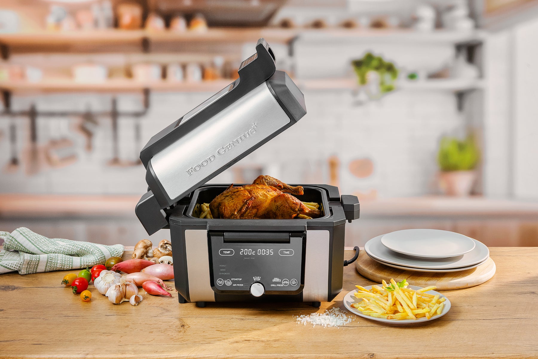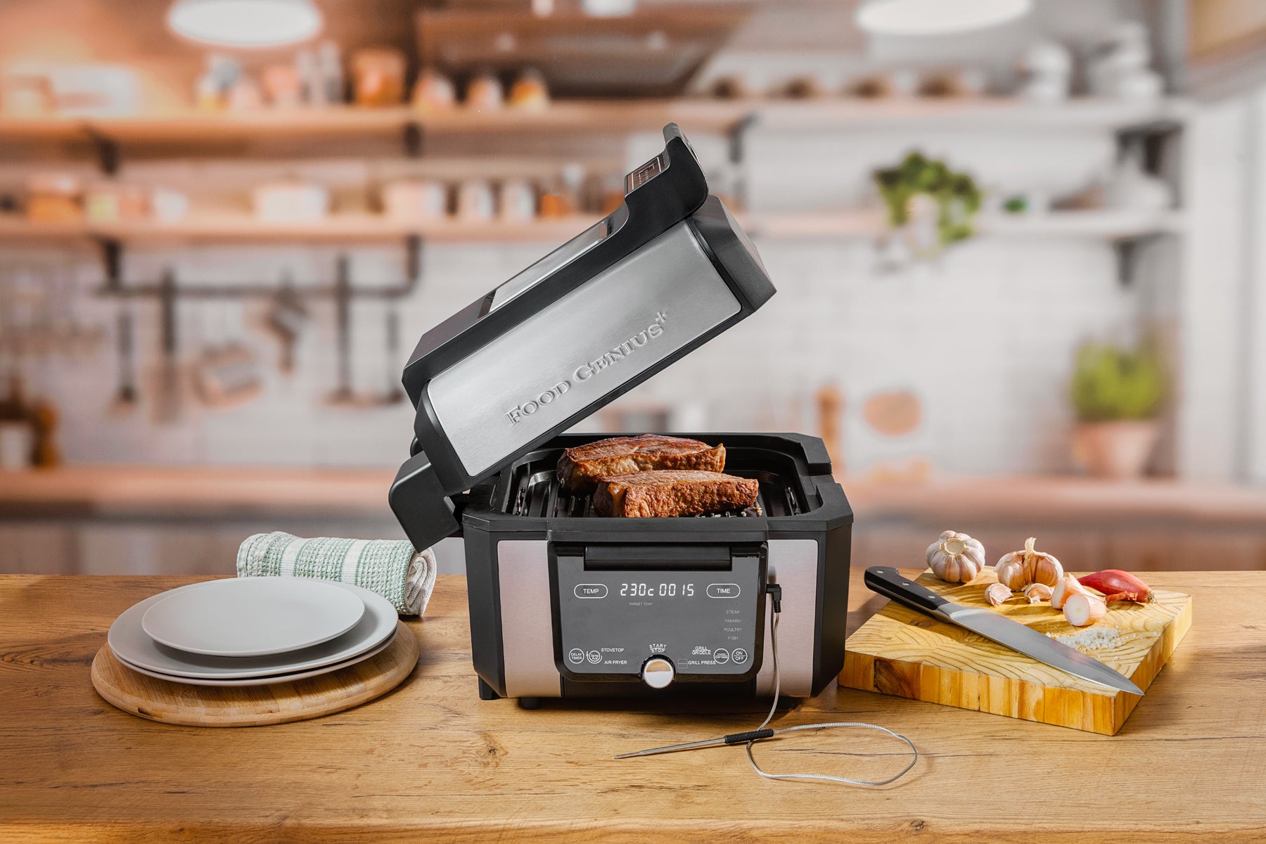 Exclusive to Cook4Life, the Food Genius+ elevates your cooking experience to new heights, delivering more value, enhanced features, and greater versatility than ever before. Discover what’s possible: a height-adjustable grill designed for consistently